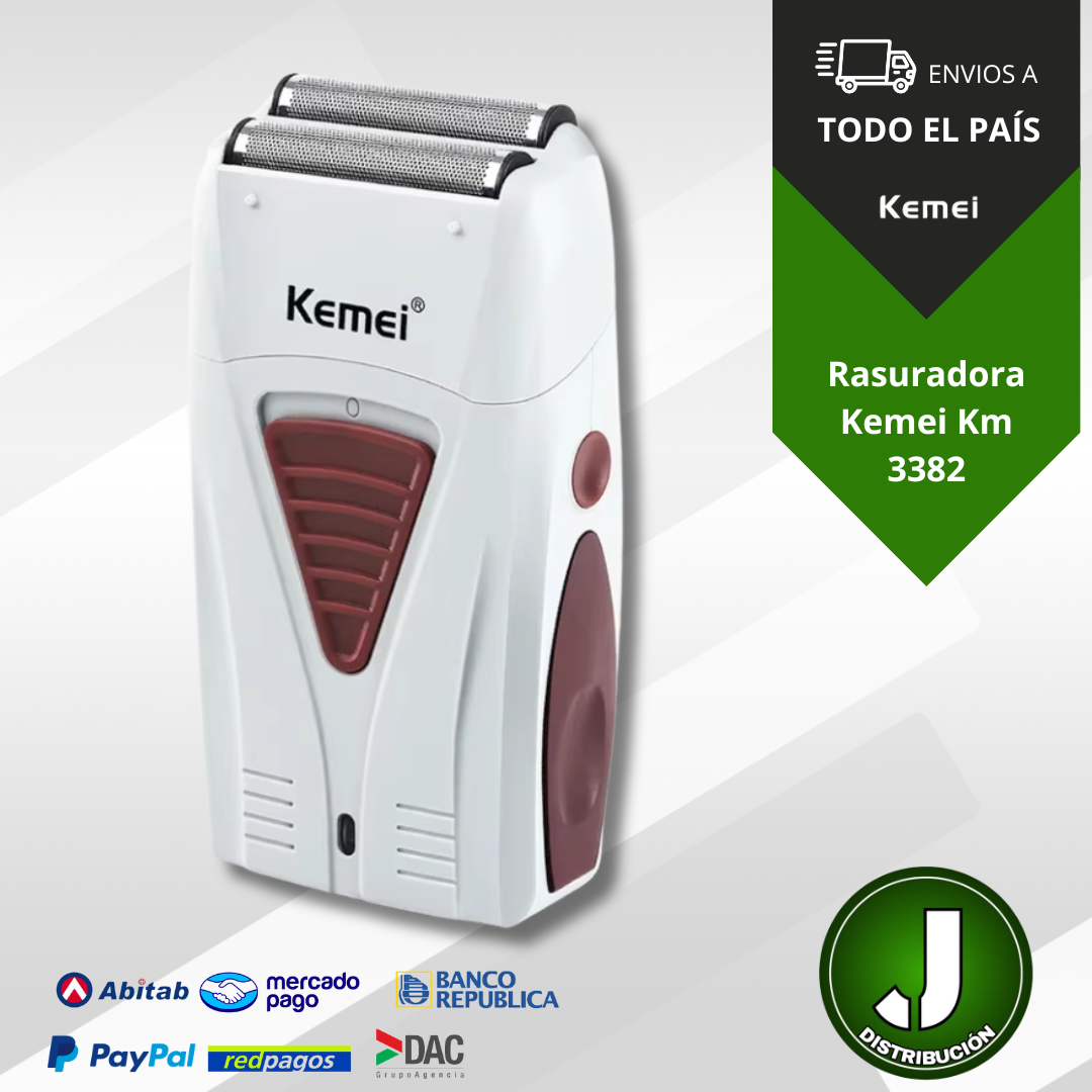 Accesorios incluidos: La afeitadora Kemei KM-3382, Un cepillo para la limpieza, Un cable de carga USB, Una tapa protectora para las láminas, El manual de usuario.